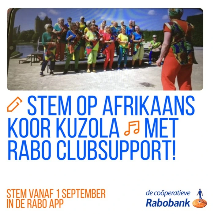 Voor de eerste keer doet Kuzola mee aan de Rabo Clubsupportactie. De opbrengst gaan we besteden aan een goede microfoon en -standaard. En daarvoor hebben we zoveel mogelijk stemmen nodig. Heeft u een Rabo-rekening of een verzekering bij de Rabo, dan kunt u lid worden via de Rabo-app of telebankieren.